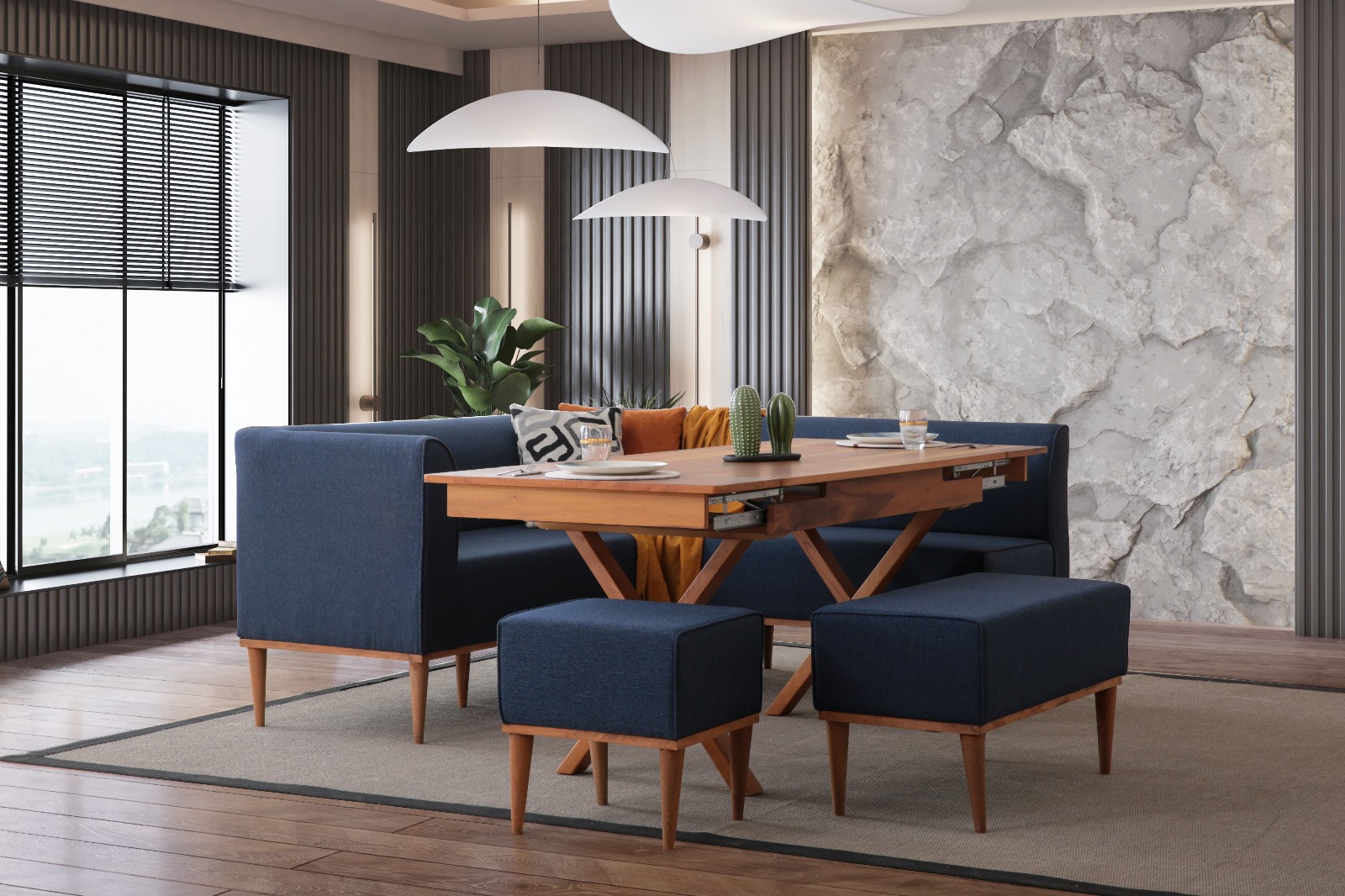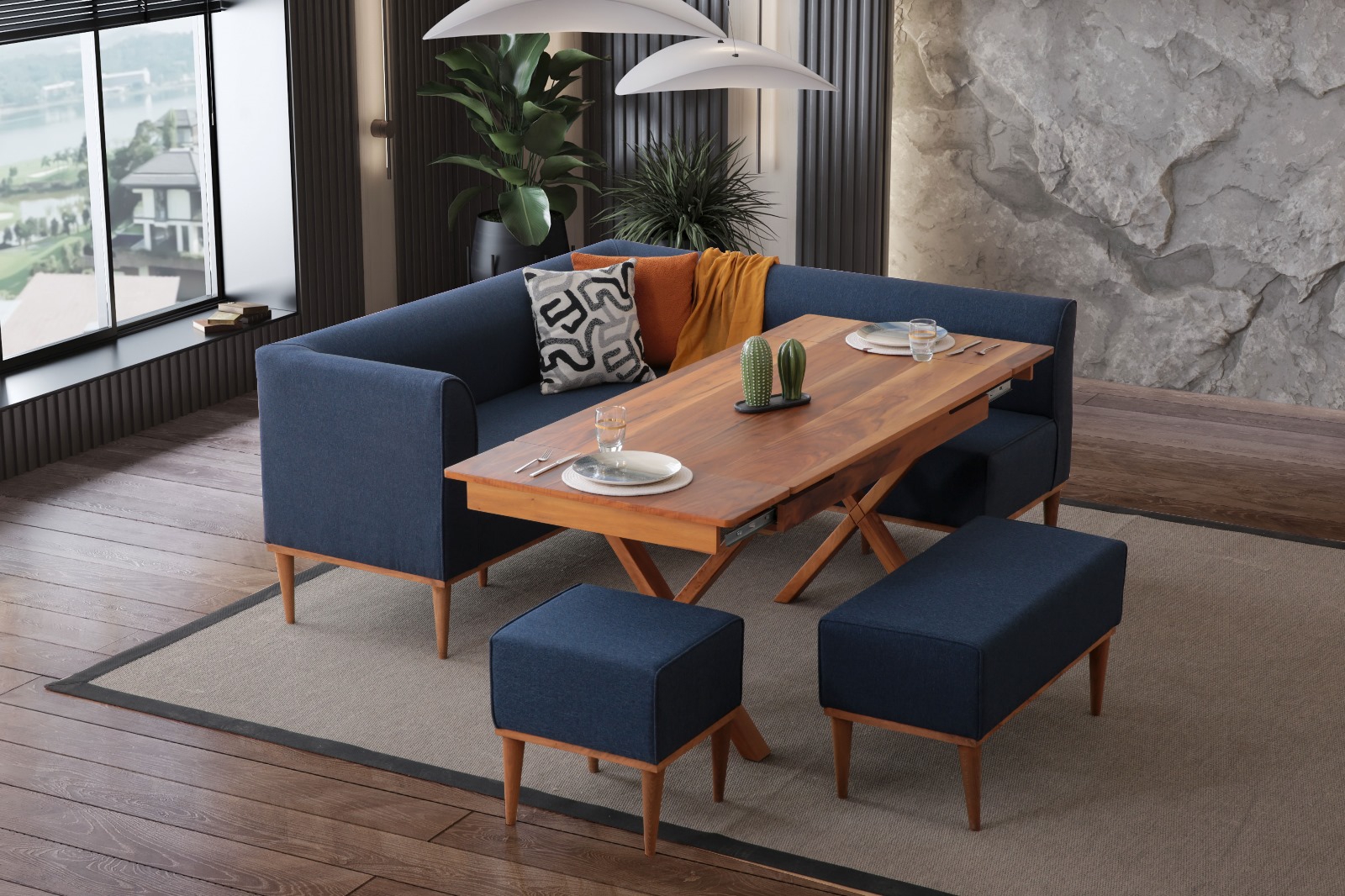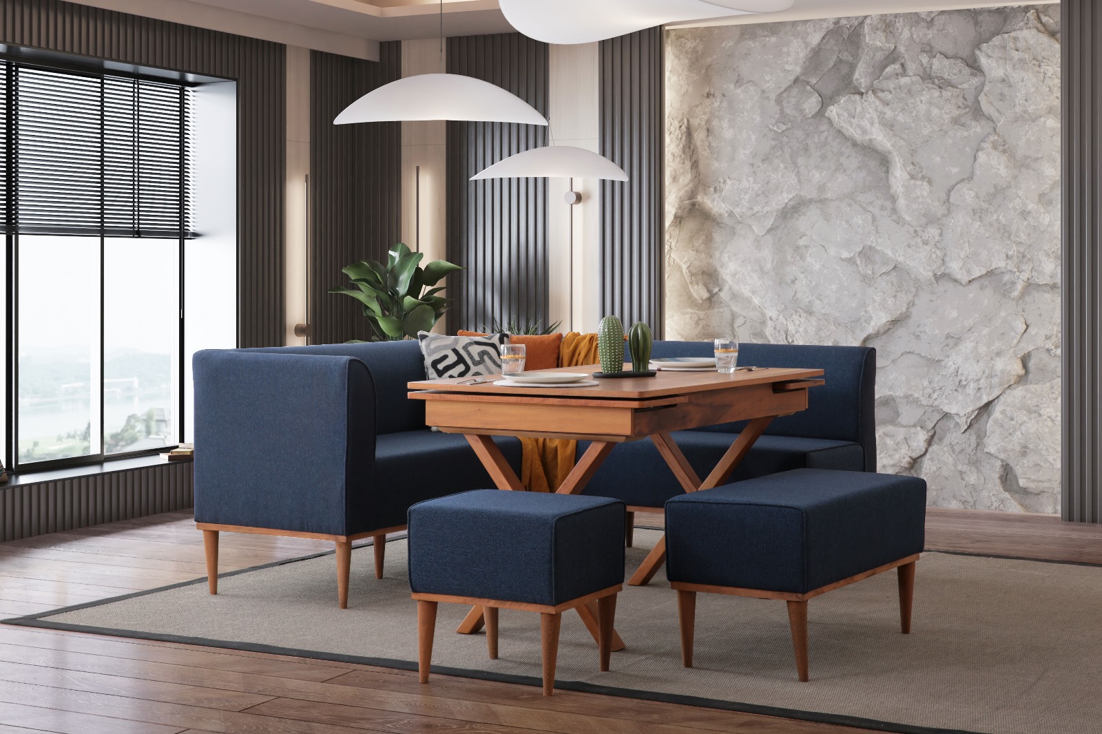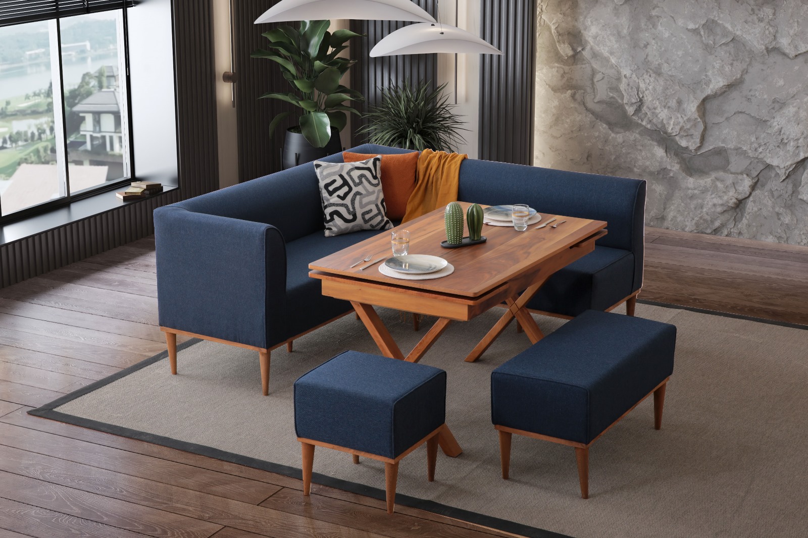 MUNGA MUTFAK KÖŞE TAKIMI LACİVERT (SET)