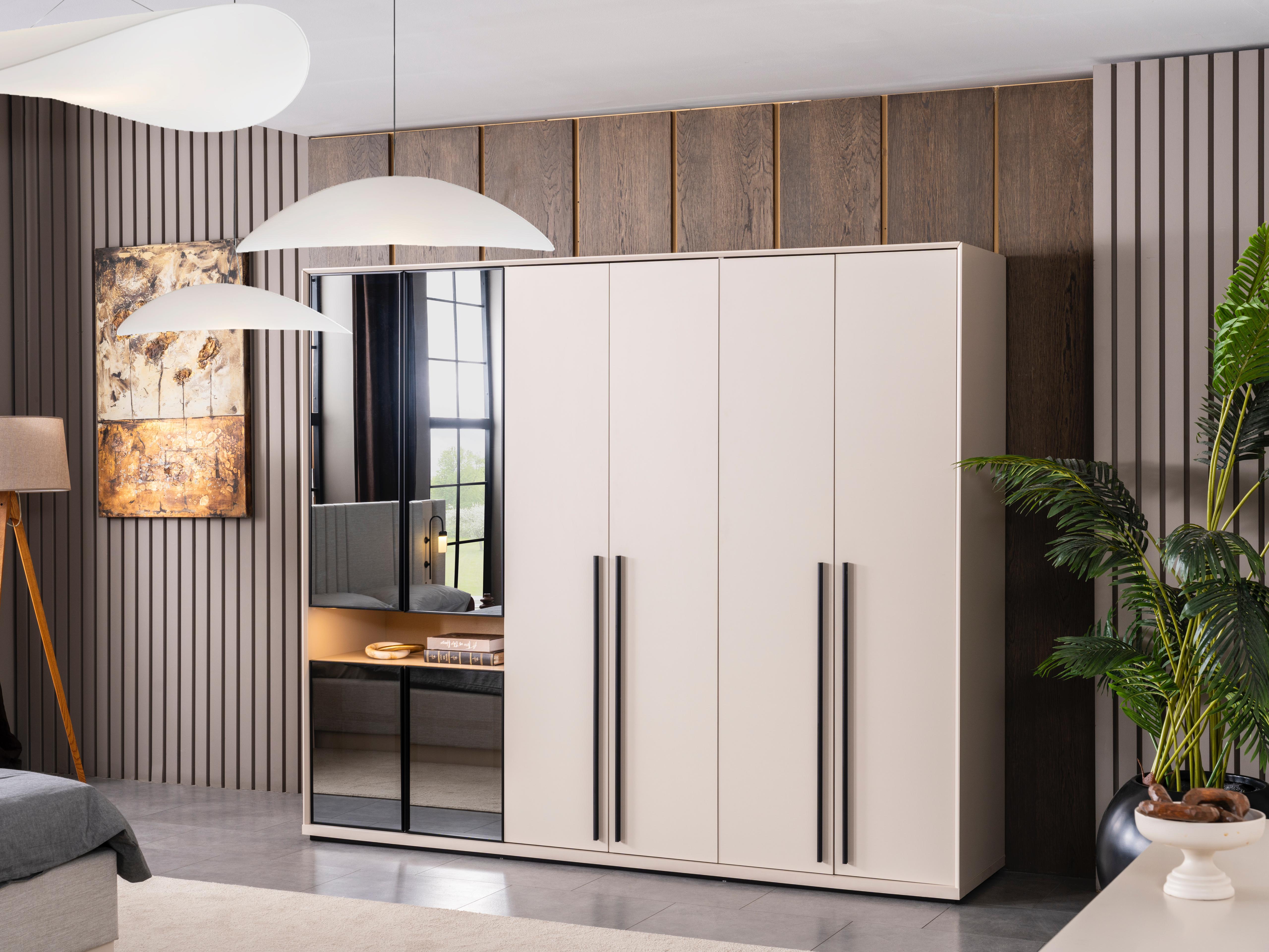 Takım İçeriği 1 Adet Gardırop, Gardırop Gövde yonga levha ile üretilmiştir. Kapak Fonksiyon 6 adet menteşe kapaktan oluşmaktadır. Bakım Mobilyalarınızın temizliğini nemli bezle silerek yapabilirsiniz. Direkt güneş ışığından koruyunuz. Sıcak yüzeylerin ve suyun uzun süreli yüzeye temasından kaçınınız. Demonte Parçalar Tüm parçalar demonte gönderilir. MODÜL ÖLÇÜLERİ